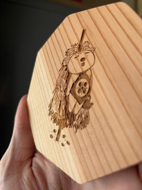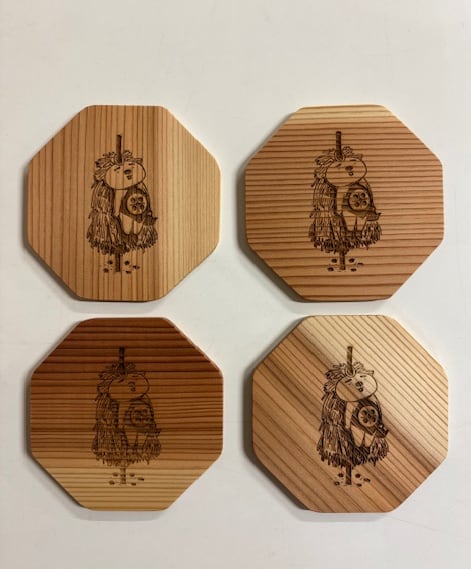 岩手県奥州市公式マスコットキャラクター「おうしゅうたろう」の木製コースターです。