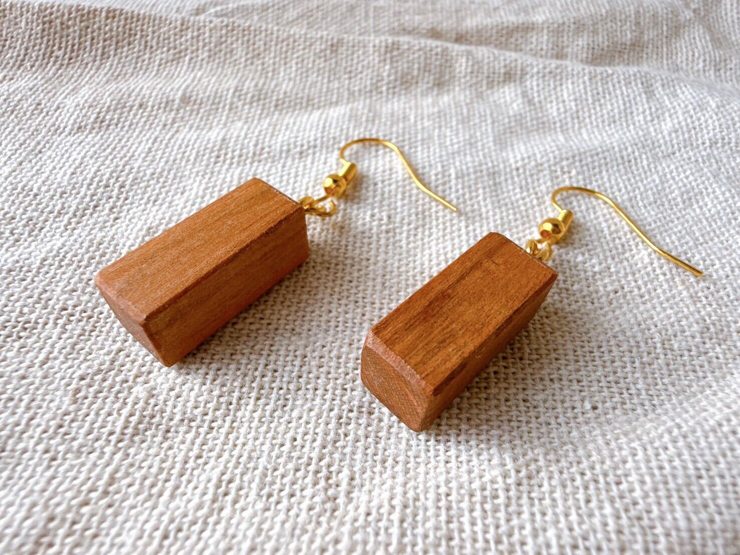 木の温もりが感じられるシンプルで魅力的なピアスです。サイズは9×20mmのサクラを使用し、全長は30mm。シンプルなデザインが耳元を優しく彩り、どんなスタイルにも自然に溶け込みます。軽やかな着け心地で、デイリーから特別な日まで幅広くお楽しみいただけるアイテムです。
