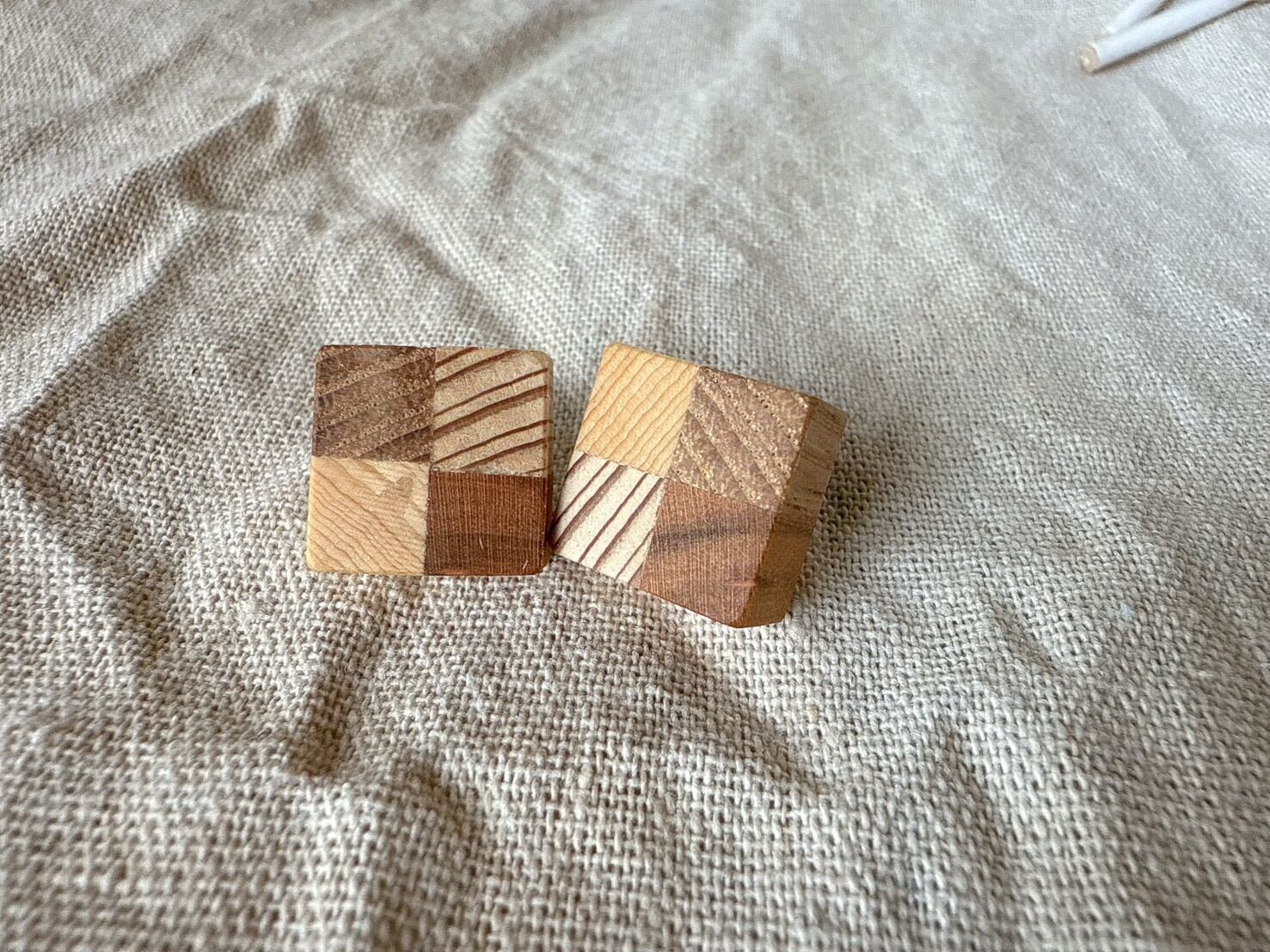 木の温もりが感じられるシンプルでかわいいピアスです。サイズは15×15mmのヒバとクリを使用したデザインが特徴です。シンプルなスタイルが耳元を優しく彩り、さまざまなコーディネートに自然に溶け込みます。軽やかな着け心地で、日常から特別な日まで幅広くお楽しみいただけるアイテムです。